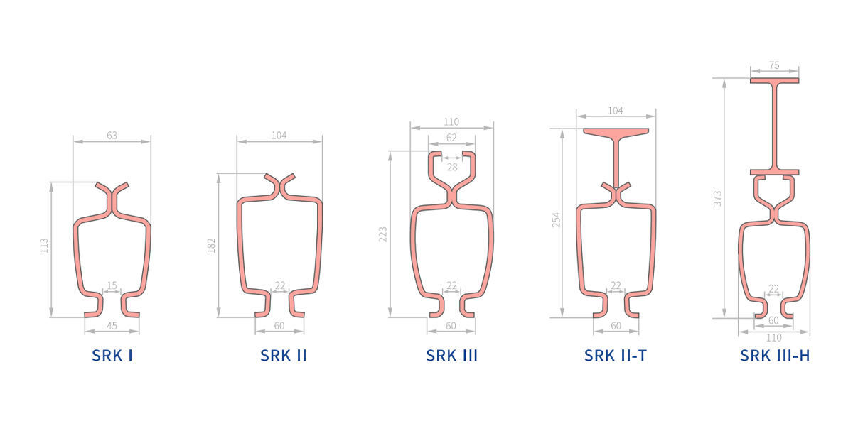 | SRKⅢ-H | 高張力軟鋼 | 38.6kg/分 | 49.12cm2 | 5900cm⁴ | 固定レールは装備されていません | 次のグラフ | カスタムサイズ | RAL2002 |
