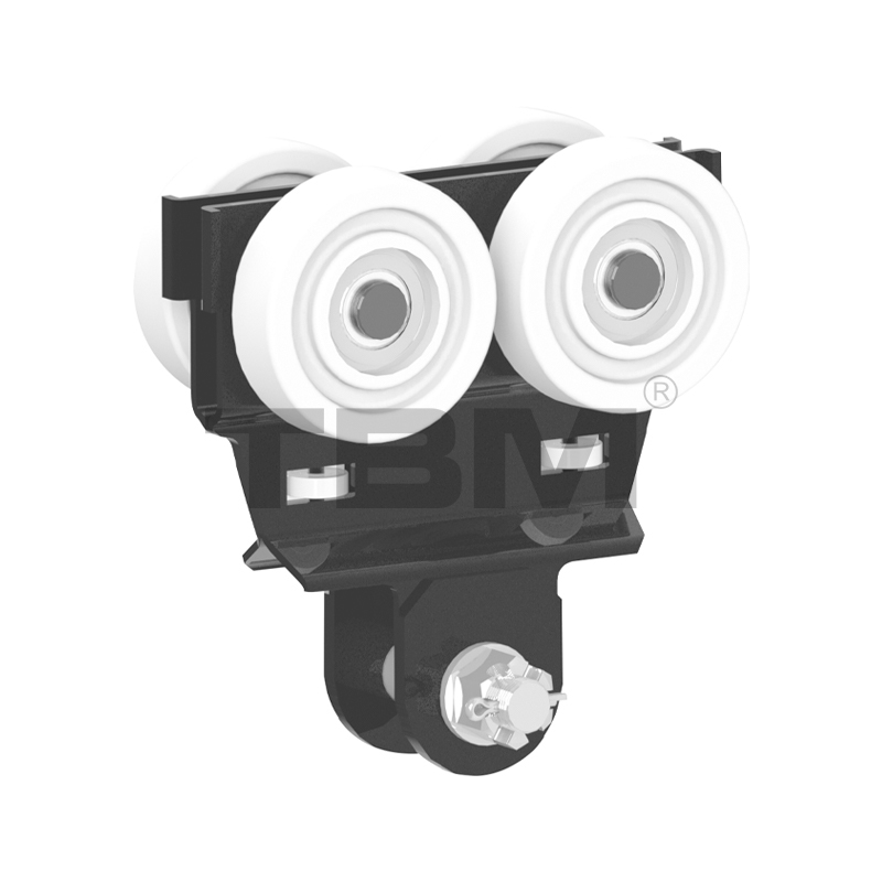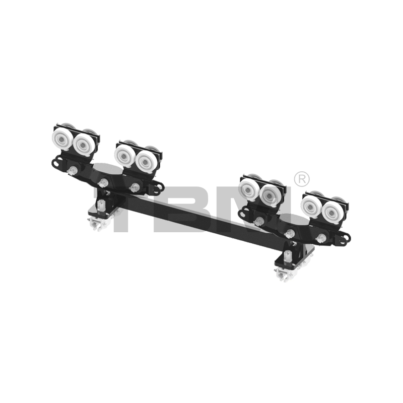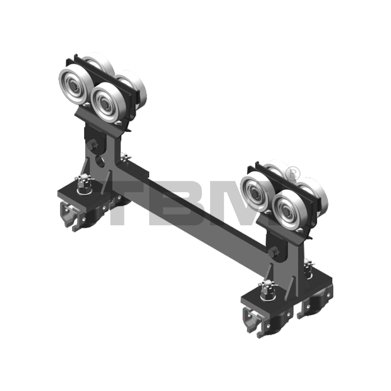 [トロリーホイールは高強度ナイロン製で、特定のホイール角度を備えており、トラックのトレッドに完全にフィットします。トロリーは動作中に自動的に中心を合わせます。トロリーには、軌道開口部との摩擦を回避し、走行抵抗を増加させるガイドホイール構造が装備されています。水平方向に配置された2枚の翼により、万一の故障時にもトロリーが線路から脱落することがなく、安全性を十分に確保しています。