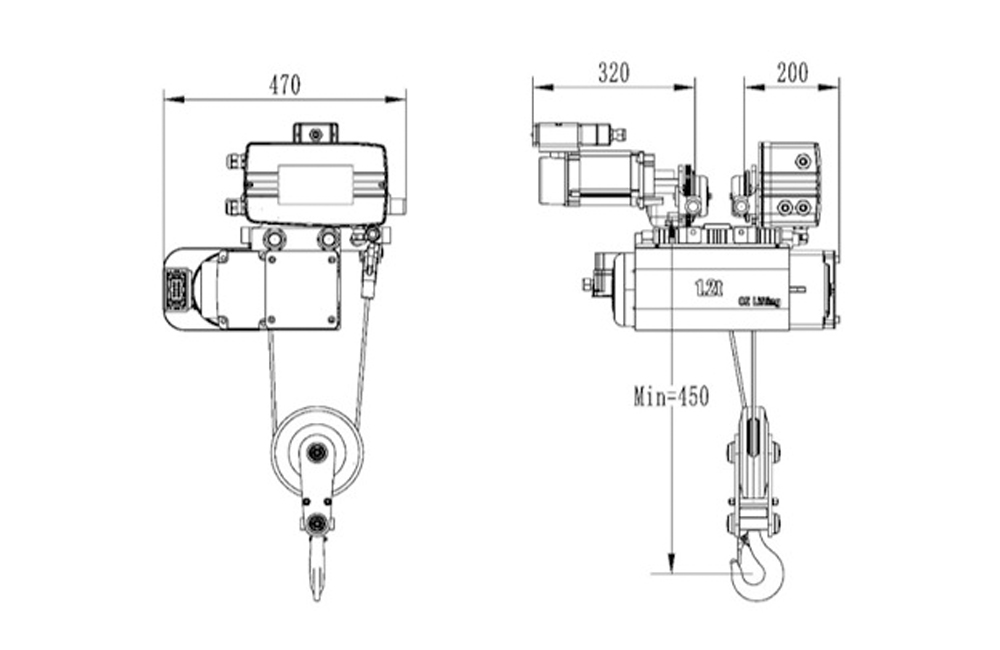 | 種類 | FEM | ロード (kg) | ホル (メートル) | 巻き上げ速度 (メートル/分) | ホイストモーター (kW) | 移動速度 (メートル/分) |